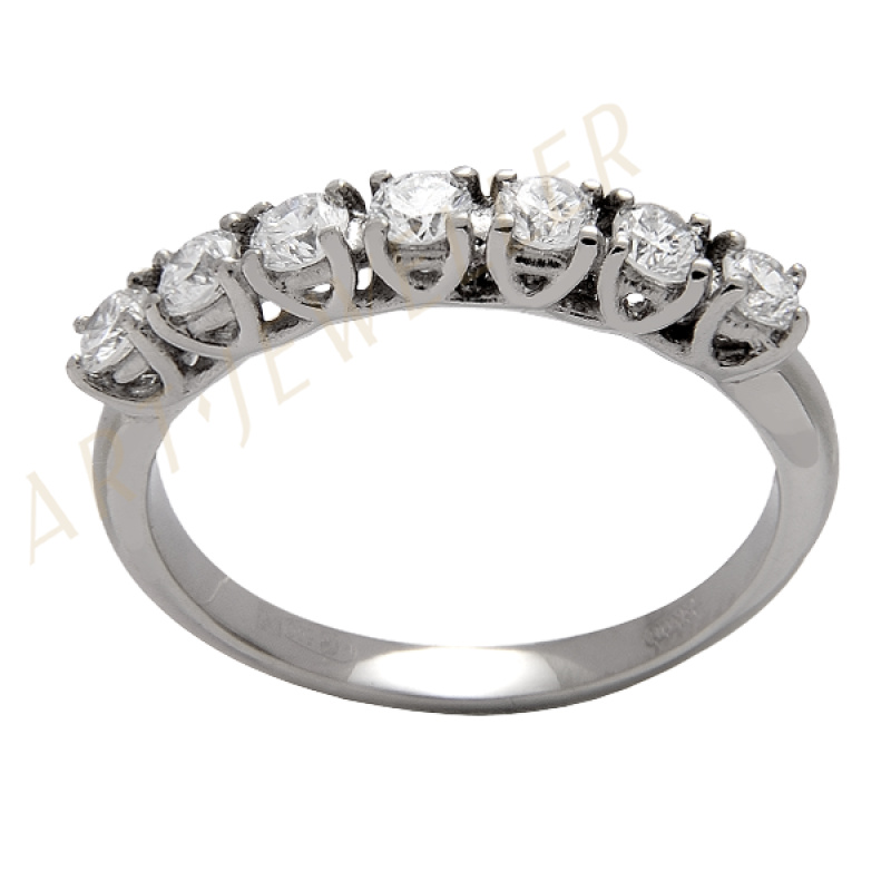 Кольцо из палладия 500 пробы с семью выращенными бриллиантами. Выращенный бриллиант – это удивительное сочетание науки и искусства, которое воплощает в себе красоту и совершенство природы. Эти камни создаются в лабораторных условиях, где под контролем высоких технологий и точных процессов воспроизводятся условия , при которых формируются природные алмазы.