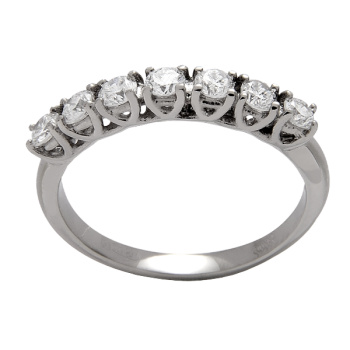 Кольцо из палладия 500 пробы с семью выращенными бриллиантами. Выращенный бриллиант – это удивительное сочетание науки и искусства, которое воплощает в себе красоту и совершенство природы. Эти камни создаются в лабораторных условиях, где под контролем высоких технологий и точных процессов воспроизводятся условия , при которых формируются природные алмазы.