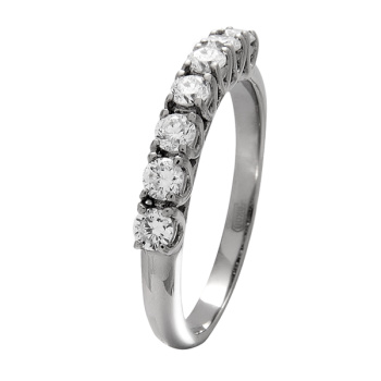 Кольцо из палладия 500 пробы с семью выращенными бриллиантами. Выращенный бриллиант – это удивительное сочетание науки и искусства, которое воплощает в себе красоту и совершенство природы. Эти камни создаются в лабораторных условиях, где под контролем высоких технологий и точных процессов воспроизводятся условия , при которых формируются природные алмазы.